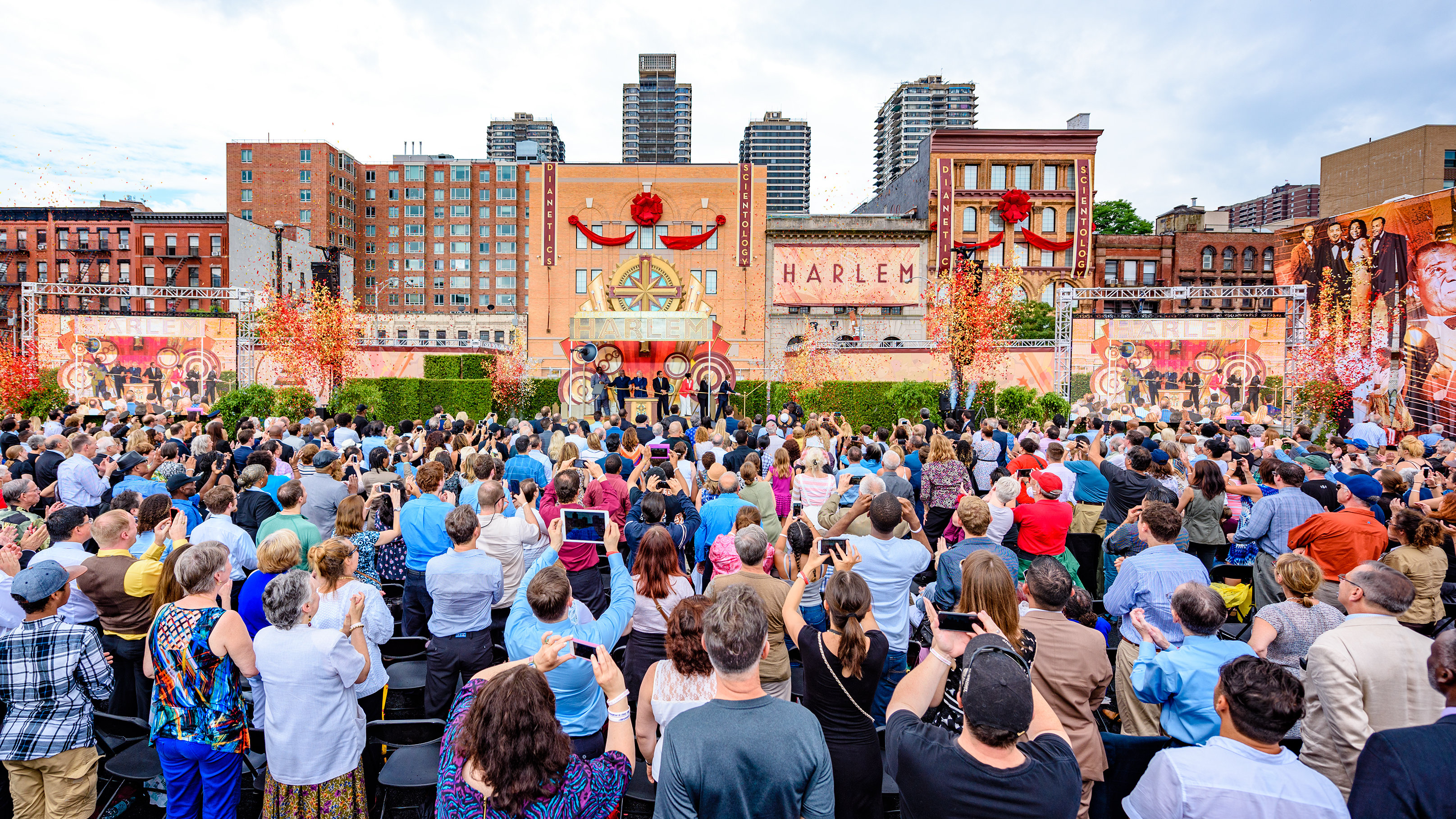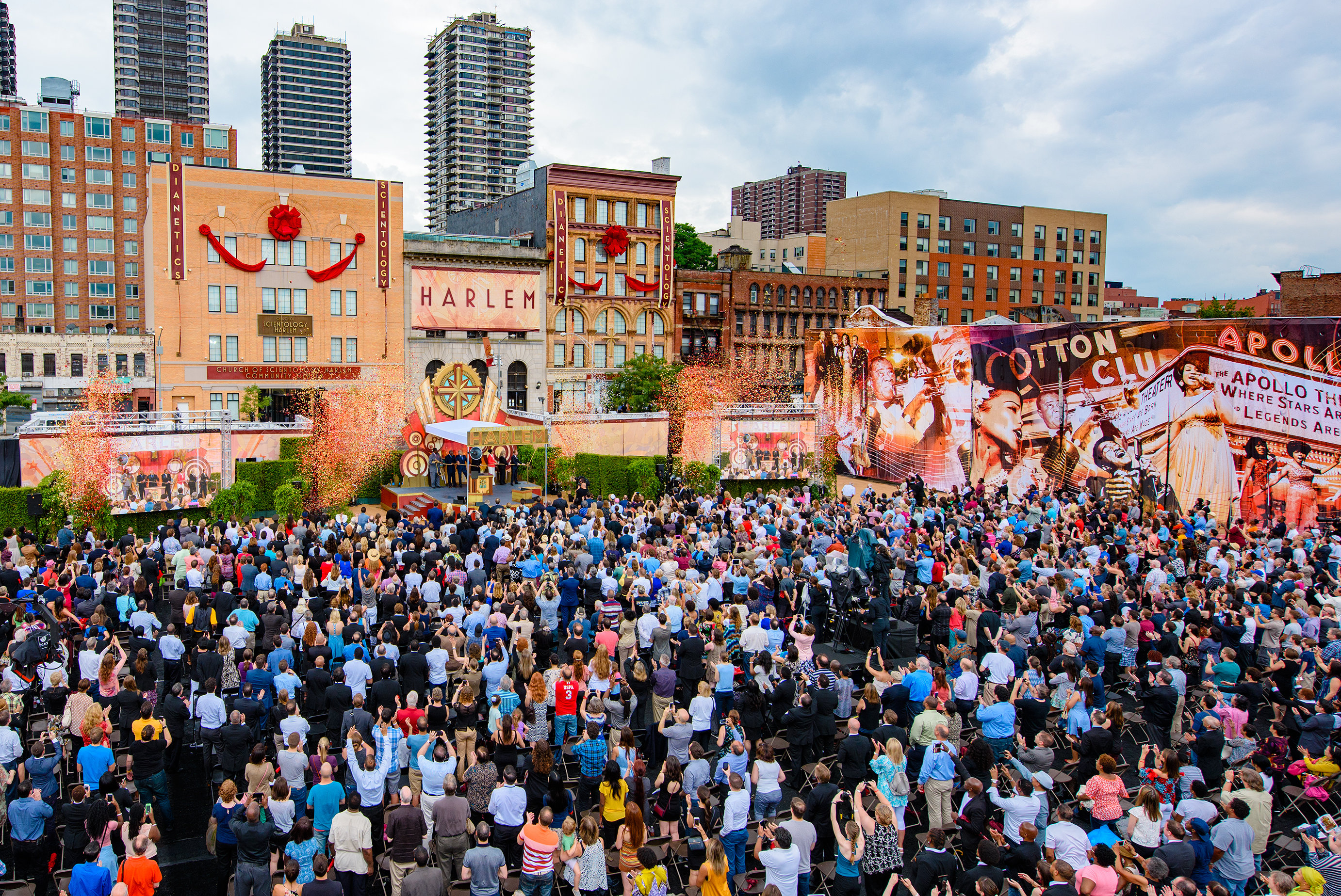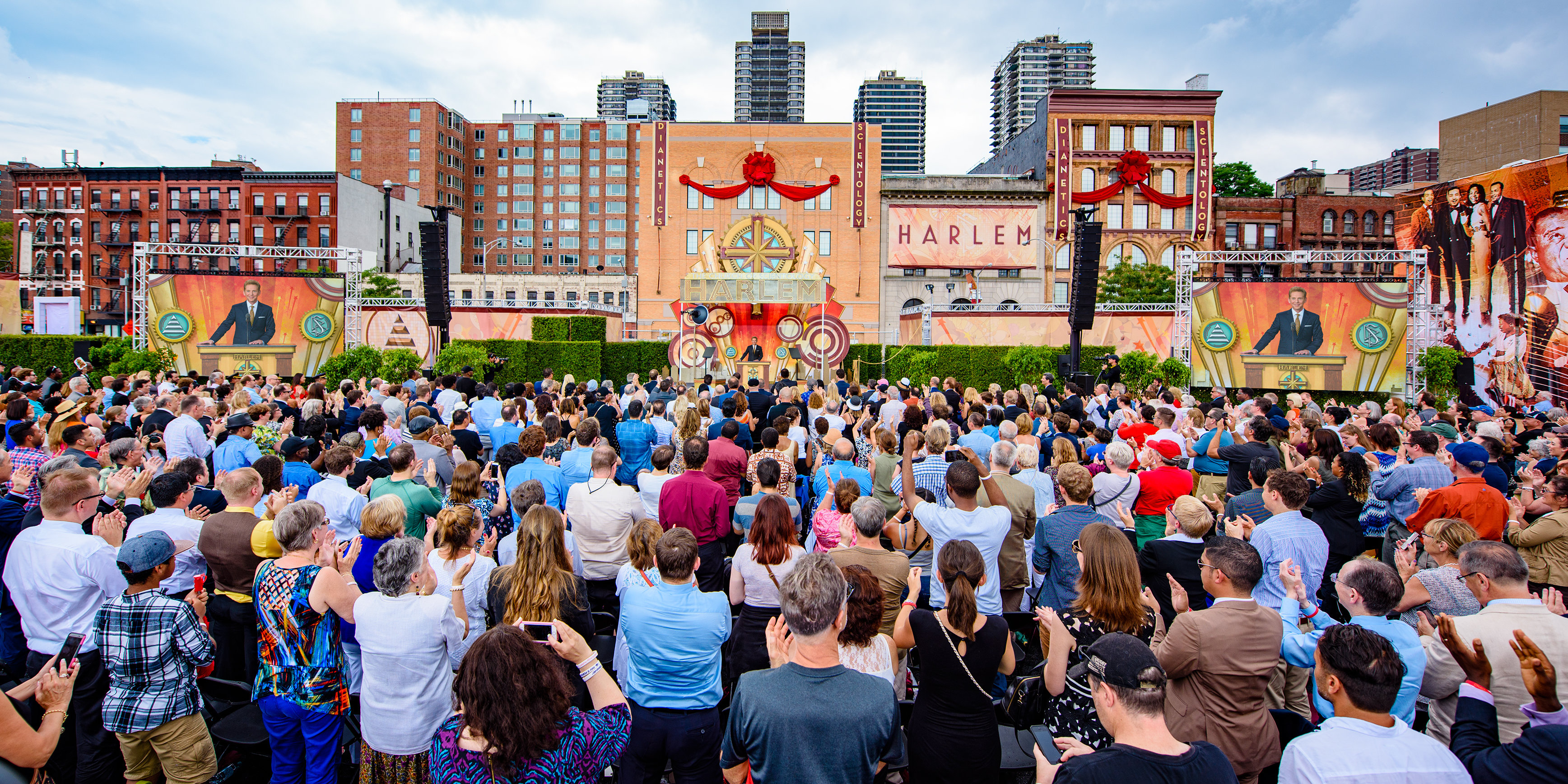 La pluie incessante s’est arrêtée, comme à un signal, quelques instants avant le début de la cérémonie. « Il n’existe aucun autre endroit comparable à Harlem », a déclaré David Miscavige, président du conseil d’administration du Religious Technology Center et chef ecclésiastique de la religion de Scientology. Vos poètes, vos auteurs, vos peintres, vos écrivains et vos musiciens, une simple énonciation de certains noms est une leçon d’humilité : Duke Ellington, Cab Calloway, Billie Holiday, Claude McKay et Louis Armstrong. Que dire d’autre à part ceci : Si l’on enlevait Harlem de l’histoire de l’Amérique, celle-ci paraîtrait bien fade. »