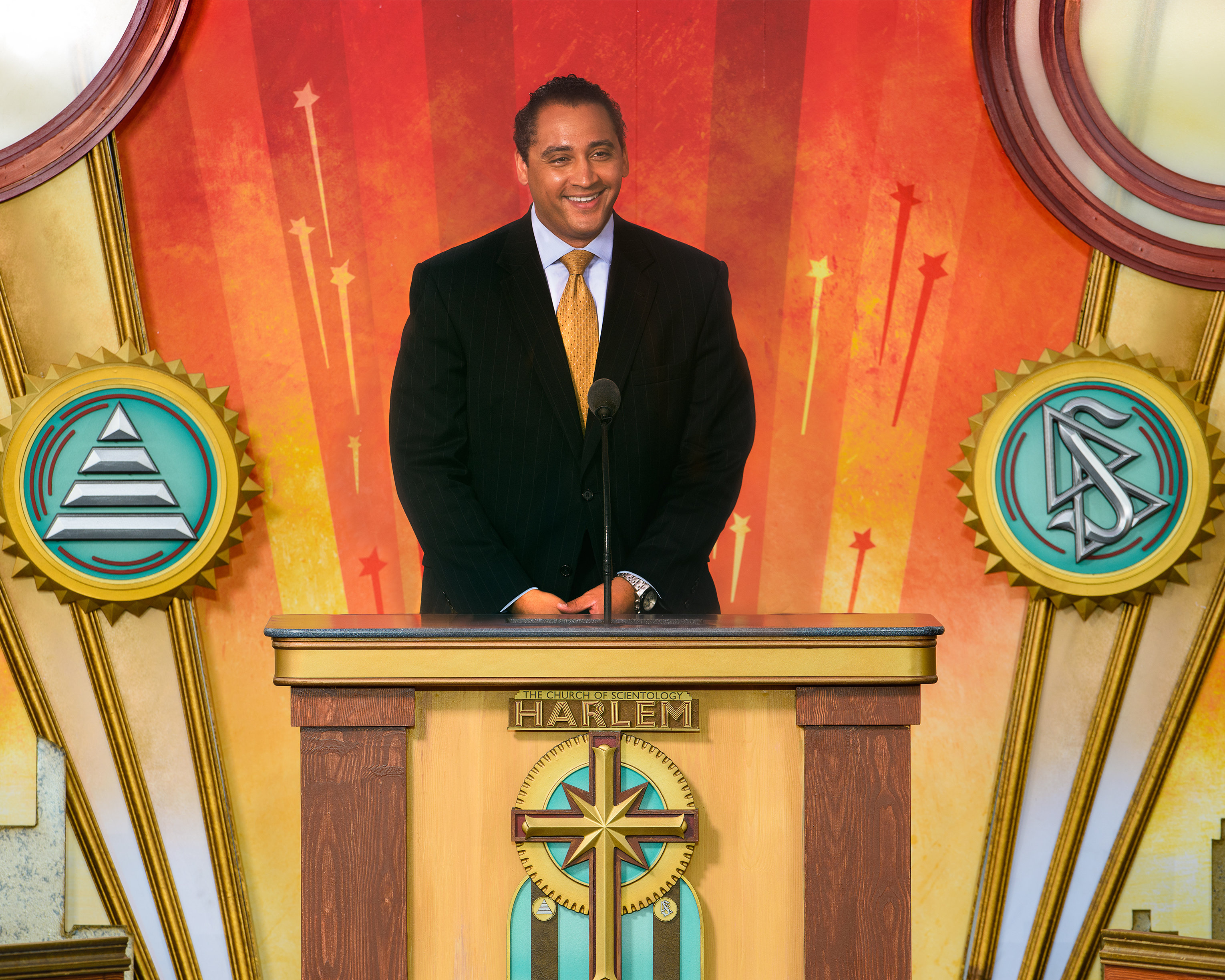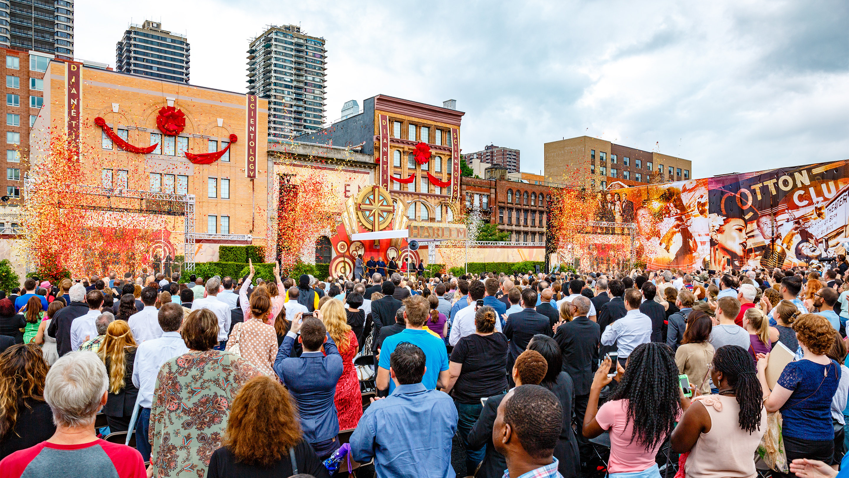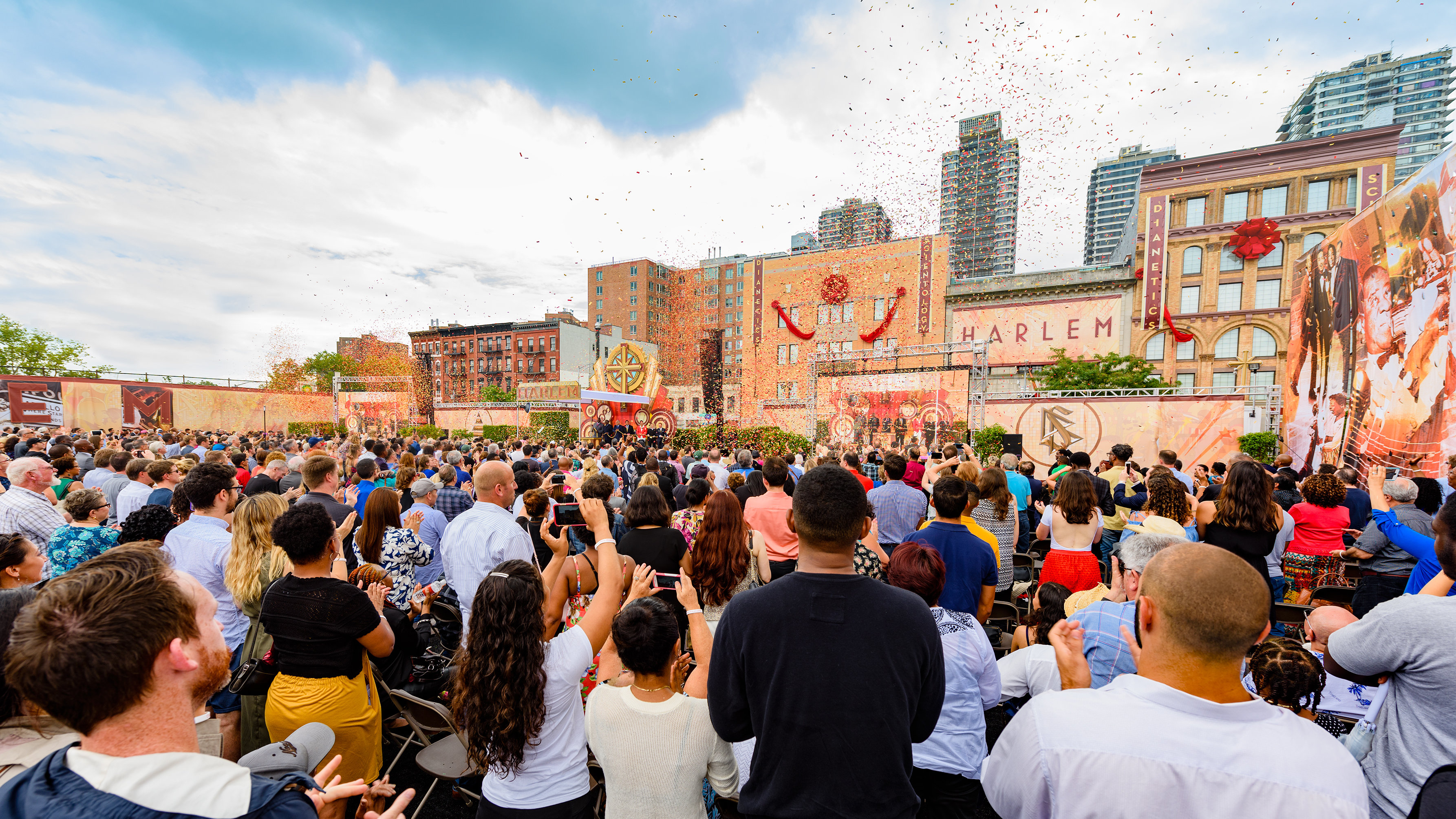 La pluie incessante s’est arrêtée, comme à un signal, quelques instants avant le début de la cérémonie. « Il n’existe aucun autre endroit comparable à Harlem », a déclaré David Miscavige, président du conseil d’administration du Religious Technology Center et chef ecclésiastique de la religion de Scientology. Vos poètes, vos auteurs, vos peintres, vos écrivains et vos musiciens, une simple énonciation de certains noms est une leçon d’humilité : Duke Ellington, Cab Calloway, Billie Holiday, Claude McKay et Louis Armstrong. Que dire d’autre à part ceci : Si l’on enlevait Harlem de l’histoire de l’Amérique, celle-ci paraîtrait bien fade. »