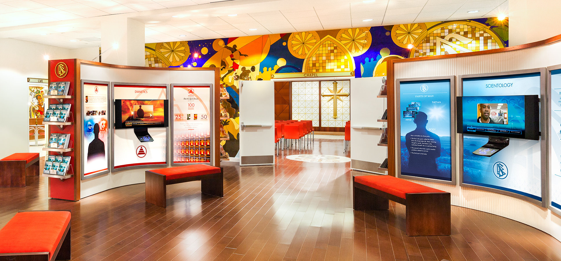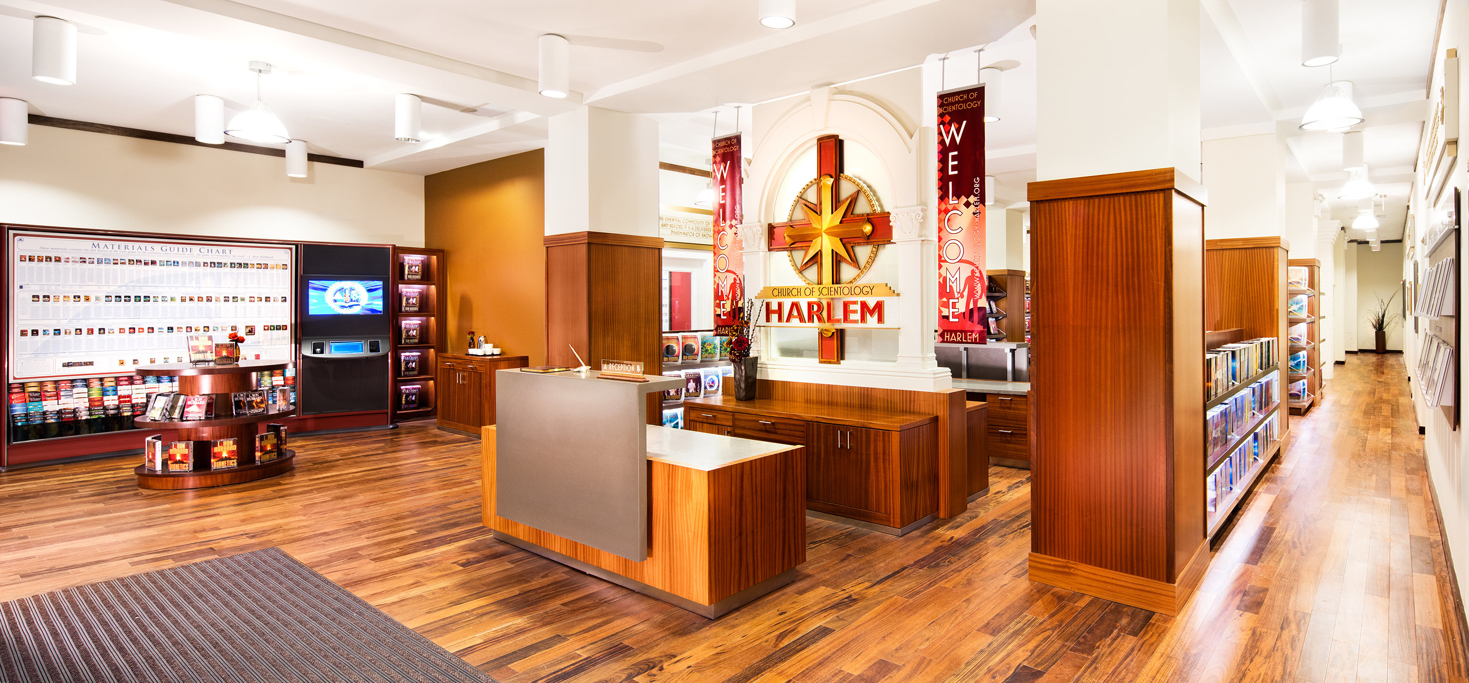 La nouvelle Église idéale de Harlem offre aux visiteurs une introduction à la Dianetics et à la Scientology, à commencer par le centre d’information public. Celui-ci présente plus de 500 films d’information sur les croyances et les pratiques de la religion de Scientology, ainsi que sur la vie et les découvertes de son fondateur, L. Ron Hubbard.